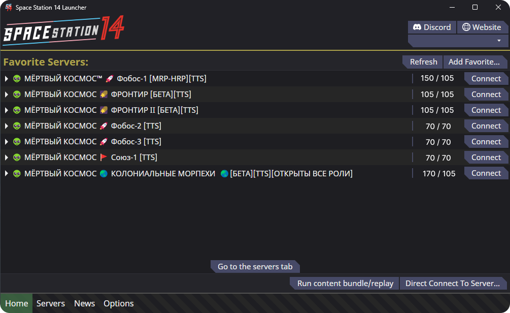 В появившемся списке серверов найдите сервера с названием "МЁРТВЫЙ КОСМОС" и добавьте их в избранное